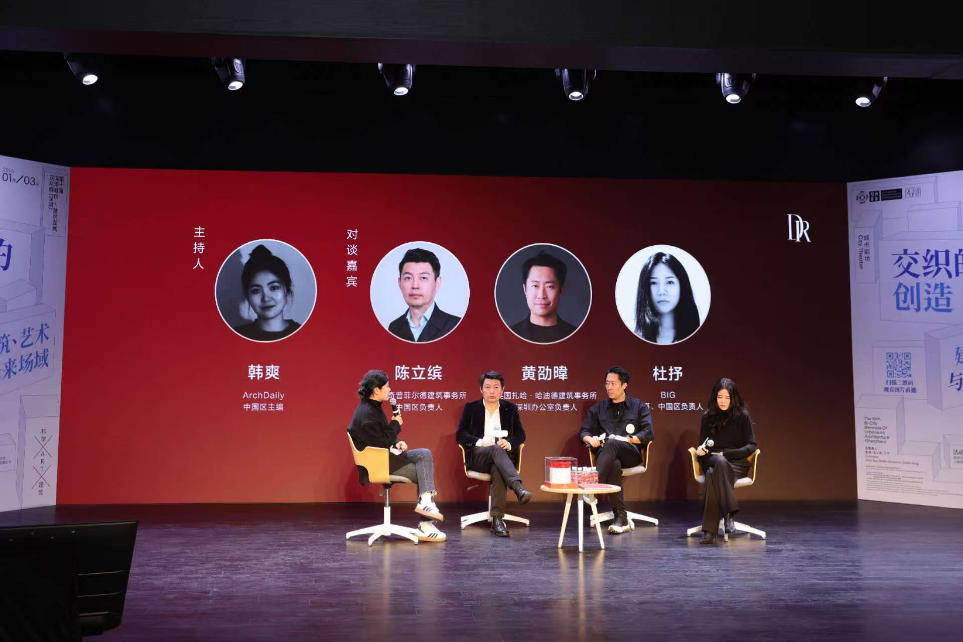 从左到右为:戴卫奇普菲尔德建筑事务所中国区负责人-陈立缤、BIG董事,中国区负责人-杜抒、DR珠宝联合创始人-张国涛扎哈·哈迪德、BIG、戴卫奇普菲尔德
