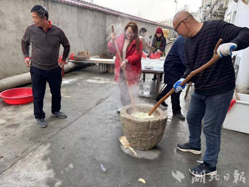湖北日报客户端讯(通讯员吴维)随着农历丙午马年新春脚步渐近,麻城市鼓楼街道凉亭村许多院落里响起雄浑有力的号子声。“打糍粑、迎大年”传统民俗徐徐展开,滚烫的石臼中翻滚着软糯的糯米,木槌起落间交织着乡情暖意,这场跨越百年的民俗盛宴,正以最鲜活的姿态召唤着在外游子归家团圆,让年味在烟火氤氲中愈发醇厚。