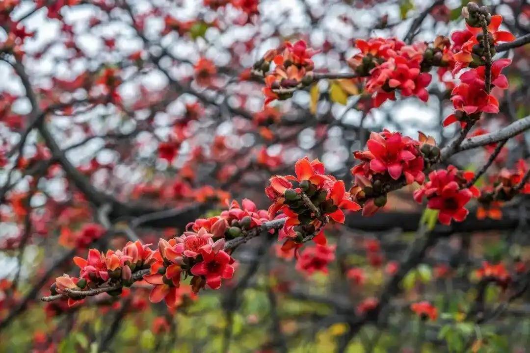 佛山春日限定浪漫,文华公园木棉红火燃爆佛山文华公园的木棉花开得简直不讲武德满树的橙红像烧着的晚霞跌进了人间不需要滤镜,不需要构图随手一拍都是大片质感